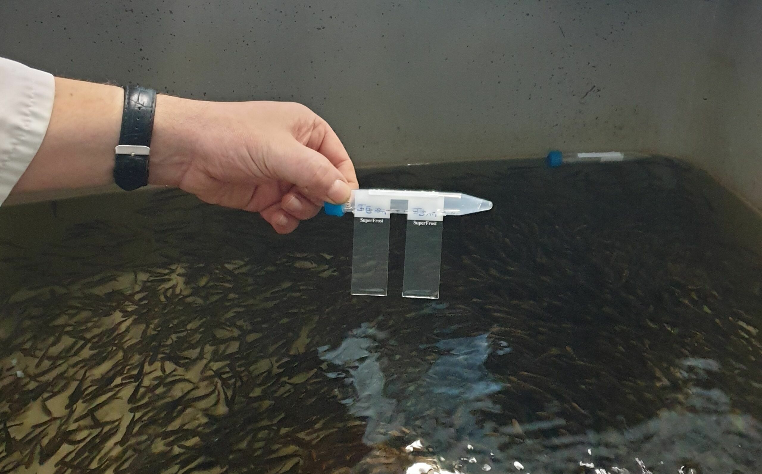 Cette invention a été réalisée en collaboration avec le laboratoire de l’ANSES « Laboratoire de Ploufragan-Plouzané-Niort, Unité des maladies virales des poissons, Laboratoire national de référence pour les maladies réglementées des poissons », situé sur le site du Technopôle Brest-Iroise à Plouzané. L’ANSES est un établissement public français fondé en 2010 et qui dépend des ministères chargés de la Santé, de l’Agriculture, de l’Environnement, du Travail et de la Consommation. Il a pour but d’évaluer les risques sanitaires humains dans les domaines de l’environnement, du travail et de l’alimentation, mais aussi pour le bien-être animal et végétal. Pour ce faire, l’ANSES dispose de neuf laboratoires dispersés sur le territoire français qui effectuent des missions de recherche scientifique et de référence analytique. Ce laboratoire est spécialisé dans l’étude du bien-être chez les poissons et des effets de différents contaminants (chimiques, biologiques) sur ces derniers.