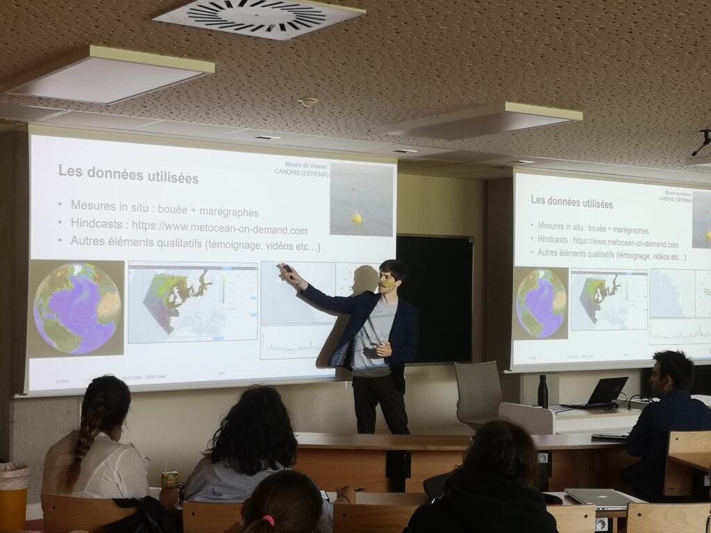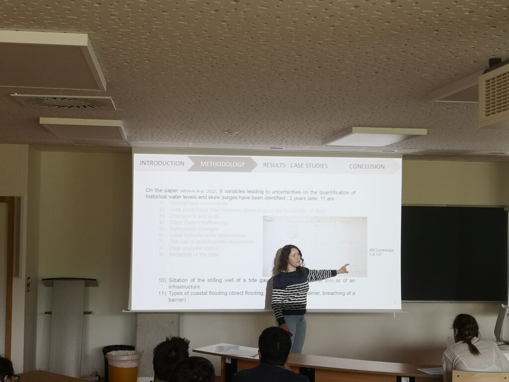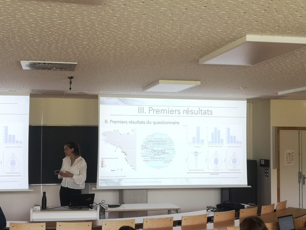 Cette journée s’inscrit dans la continuité d’autres travaux menés sur les risques d’inondation et de submersion, notamment l’intervention de Leia Savary au congrès EMCEI au Maroc, où cette dernière avait déjà eu l’occasion de présenter ses travaux sur cette thématique. Dans cette même optique, la journée a permis à certains de ses membres d’échanger autour des perspectives du projet. La discussion a porté sur la perception des risques littoraux et des différentes méthodes d’évacuation possibles en cas de crise de submersion marine.