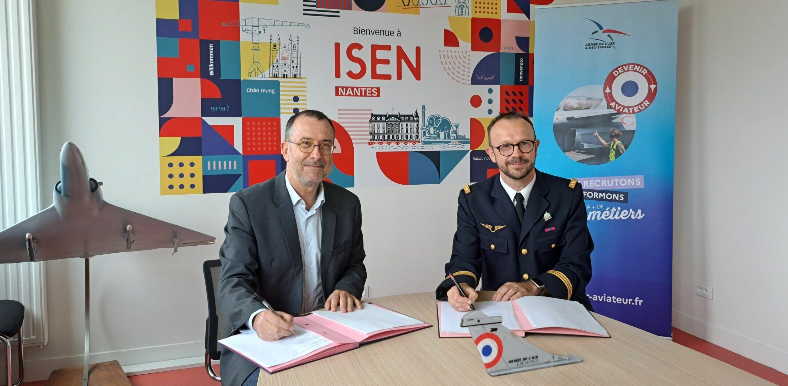 ISEN Ouest has recently formalized a new partnership with the French Air and Space Force (Armée de l’Air et de l’Espace – AAE), in the presence of Captain Yannick Abram, Lieutenant William Pineau, and Lieutenant Marie-Constance Baugier.