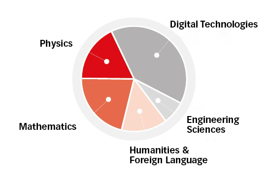 The Computer Science and Digital Technologies track is a post-secondary, 3-year program that places a strong emphasis on computer science skills. From the start, students take courses in algorithms, C programming, web development, and networking—subjects that make up nearly half of the curriculum.